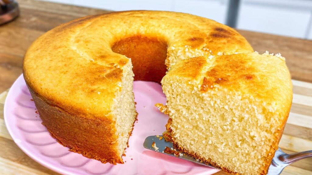 - Despeje a massa em uma forma untada e enfarinhada e leve ao forno por cerca de 35 a 40 minutos, ou até que o bolo esteja dourado e firme ao toque.