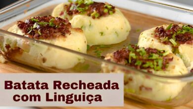 Batata recheada com linguiça uma receita diferente e deliciosa para o seu almoço ou jantar